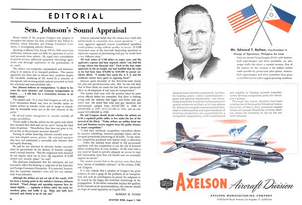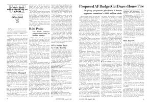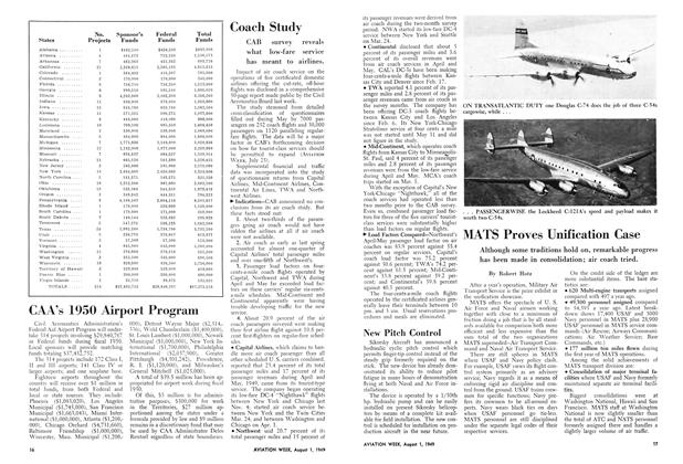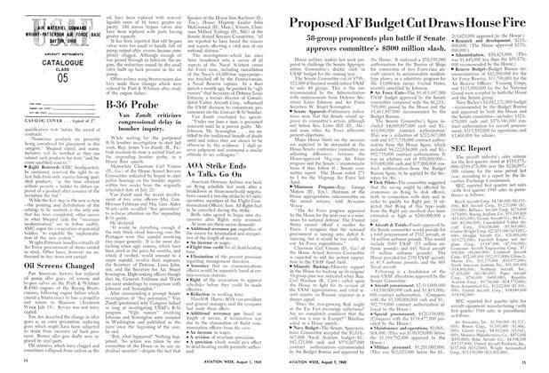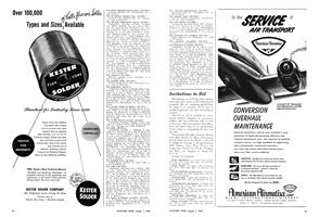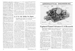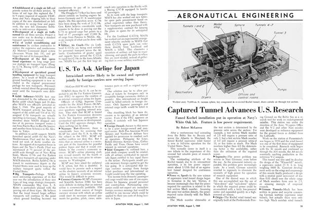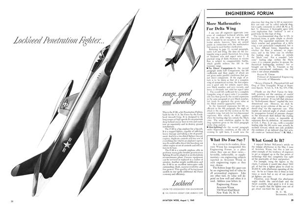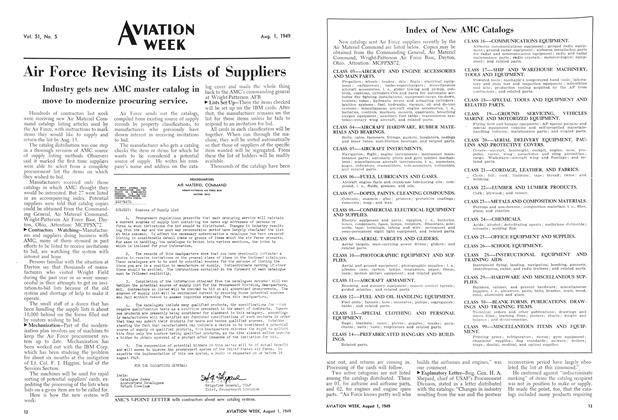USAF is serious about the use of aerial refueling as a quick extension of jet fighter ranger. Initial experiments have been made with the Boeing flying boom type refueling equipment (AVIATION WEEK, July 18) at Muroc, and operational procedures will probably be worked out for the North American F-86-F-93 series which have an extremely short range at present, late model Republic F-84s which will be used primarily for ground support operations, and the Lockheed F-90 penetration fighter.