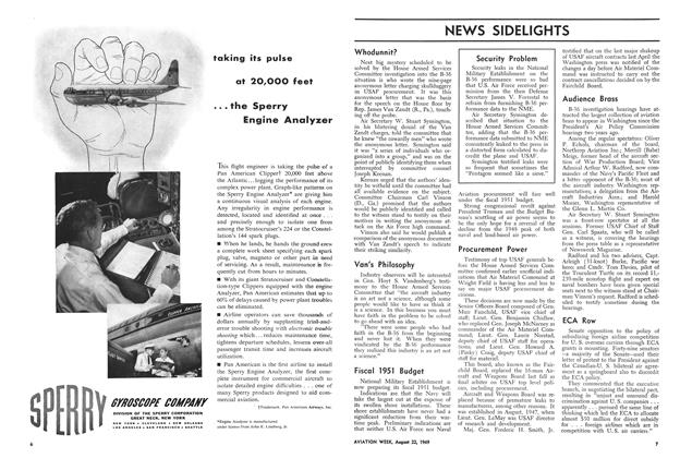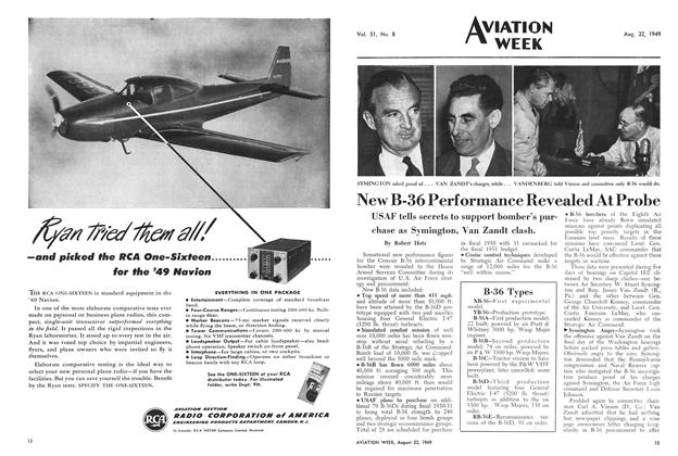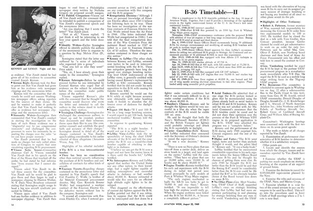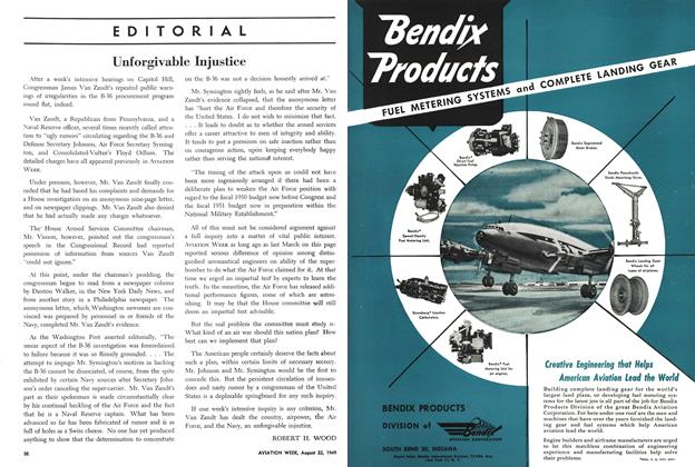 After a week’s intensive hearings on Capitol Hill, Congressman James Van Zandt’s repeated public warnings of irregularities in the B-36 procurement program sound flat, indeed. Van Zandt, a Republican from Pennsylvania, and a Naval Reserve officer, several times recently called attention to “ugly rumors” circulating regarding the B-36 and Defense Secretary Johnson, Air Force Secretary Symington, and Consolidated-Vultee’s Floyd Odium.