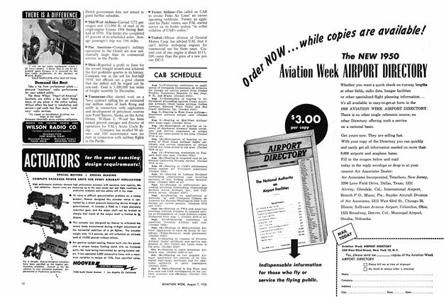 All American—Has asked the Civil Aeronautics Board for new routes between Williamsport, Pa., and Cleveland, O., via Bradford, Pa., Jamestown, N. Y., and Erie, Pa.; between ScrantonWilkes Barre, Pa., and Hagerstown, Md., via Hazelton and Harrisburg, Pa.