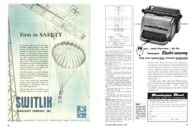 These are the first views of the big Bell YH-12B 10-place-plus-pilot helicopter, 13 of which were built for the USAF. The YH-12B is powered by a P&W R-1340 Wasp of 600 hp. which gives the craft a top speed of over 120 mph. and a cruising speed of 85.