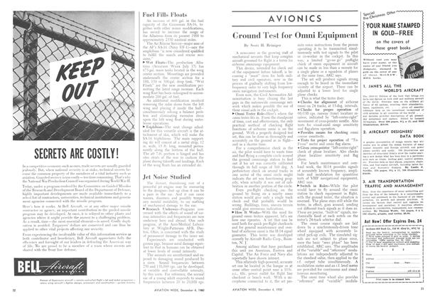 A newcomer in the growing staff of mechanical servants that keep complex aircraft groomed for flight is a tester for airborne omnirange equipment. This device, intended for check out of the equipment before takeoff, is becoming a “must” item for both military and civil operators, now in the process of gradually shifting from lowfrequency radio to very high frequency omni navigation instruments.
