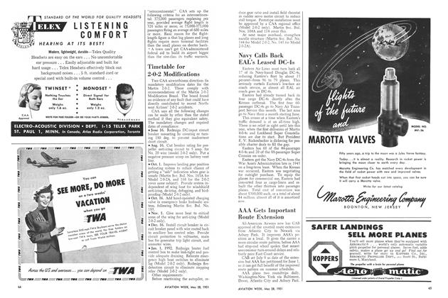 USAF announces it has ordered into production a new single-seat fighter-bomber version of the Lockheed F-94, the F-94D, similar to the F-94C interceptor. It uses the P&W J-48, rated at 6,250-lb. thrust without afterburner. This confirms AVIATION WEEK’S May 7 story that such a plane had been proposed by Lockheed to the AF, to carry extra fuel tanks in the space occupied by the radar operator in the F-94C . . .