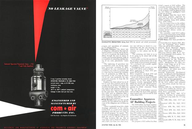 The $834-million Air Force construction program approved by House Appropriations Committee for fiscal 1955 provides for the Air Force Academy, new strategic and tactical air bases and more than $75 million for expansion of two of USAF’s major research and development centers—Arnold Engineering Development Center, Tenn., and Edwards AFB, Calif.