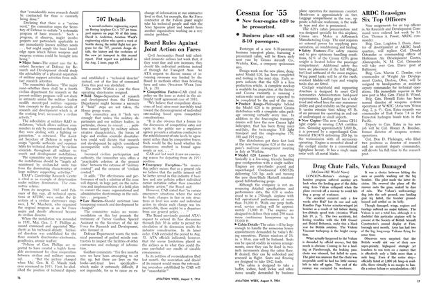 The House Military Subcommittee of the Committee on Government Operations has criticized USAF for its purchase of $100 million in RCA transceivers “of untested, revolutionary design.” The subcommittee says it is not critical of the $240,000 study contract awarded in 1945, the development contract let three years later nor the start of production of the prototype AN/ARC-21 high frequency transceiver.