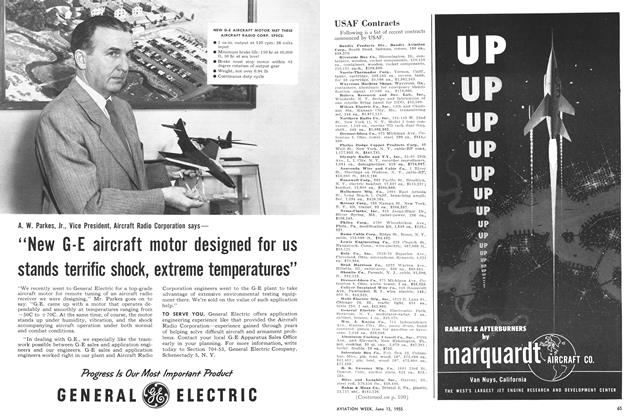 Following is a list of recent contracts announced by USAF. Bendix Products Div., Bendix Aviation Corp., South Bend, Indiana, rotors, 100 ea., $38,210. Riverside Box Co., Bloomington, Ills., containers, wooden, rocket components, 210,125 ea., containers, wooden, rocket components, 210,125 each., $396,505.