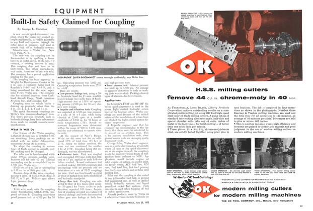 A new aircraft quick-disconnect coupling, which the maker says cannot uncouple accidentally, is readily adaptable to any fluid and operates through the entire range of pressures now used in aircraft fuel, oil or hydraulic systems. Manufacturer is Weba, Inc., New Hyde Park, N. Y.