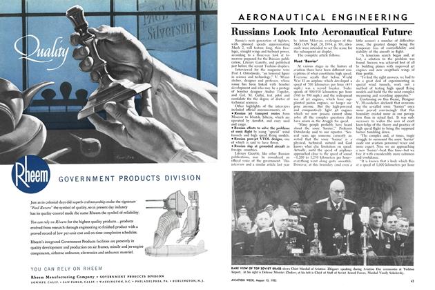 Russia’s next generation of fighters, with planned speeds approximating Mach 2, will feature long, thin fuselages, straight wings and turbojet power, according to a three-way look at tomorrow prepared for the Russian publication, Literary Gazette, and published just before the recent Tushino displays.