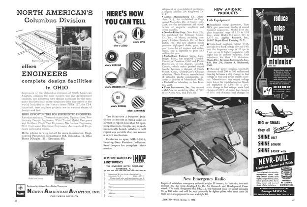 Lab Equipment Broadband sweep generators, Type HFS, give panoramic display of several hundred megacycles. Model 1319 displays frequency range of 1.35 to 1.95 kmc., while Model 813 covers 845 to 1,375 mc. Applied Research, Inc., 163-07 Depot Road, Flushing, N. Y.