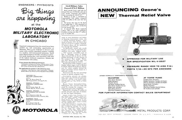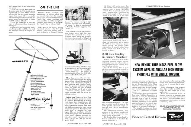 New York—Gasoline engine driven power pack, designed to make helicopters self-sufficient, has been developed by Vickers, Inc. It is small and light enough to install in large helicopters. The unit can supply power to start engines, taxi the helicopter with rotors folded, drive electrical generating equipment, operate loading ramps.