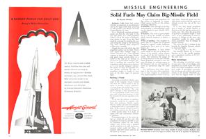 Redlands, Calif.—Solid fuel rockets will play an important, if not dominant, role in the large-missile field, according to staff members and officials of Grand Central Rocket Co. here. H. L. Thackwell, assistant president, points out that the only limit to the size and power of a solid propellant rocket is set by the means of transport from factory to pad.