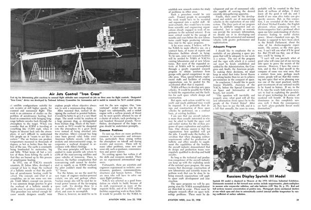 Washington—Takeoff monitor, a new type avionic device which automatically warns a pilot when his aircraft is failing to “make good” during takeoff run, begins flight tests this month. Device, which promises to reduce hazards and uncertainties of jet takeoffs, was recommended for use in jetliners by recent International Air Transport Assn, technical conference in Miami.