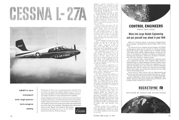 Hawthorne, Calif.-Takeoff monitor, designed to provide bighly accurate information to a pilot as to where his aircraft will leave the ground on takeoff and whether he should abort, has been proposed by Servomechanisms, Inc. Monitor displays the takeoff situation in the form, of a graphic vertical scale that presents a picture of the end of the runway with markers showing the point at which the wheels will leave the ground and the point at which the aircraft would stop if full brakes were apNeed for such a device has been demonstrated by the increasing number of takeoff accidents with the advent of jet aircraft.