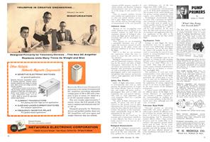 Burbank—Lockheed’s turboprop Electra, designed for economical operation on yo-yo (up-down-up-down) flight profiles, demonstrates a saving in pilot effort that blends well with the aircraft’s work-horse mission. For example, smoothness of the transport’s Allison 501-D13 constant speed turbine engines and Aeroproducts 606 propellers help reduce pilot fatigue by cutting down sound pressure levels and heavy surges associated with large power changes and landings and takeoffs of piston-powered aircraft.