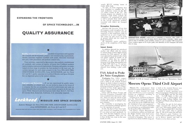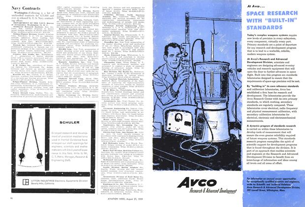 Washington—Following is a list of unclassified Contracts for $25,000 and over as released by U.S. Navy contracting offices: DEPARTMENT OF THE NAVY, Bureau of Aeronautics, Washington 25, D. C. Southwest Research Institute, San Antonio, Tex., conduct program to detect latent fatigue damage in metals and alloys, NOas 59-6202-c(AE-41-4741-9), $58,888.