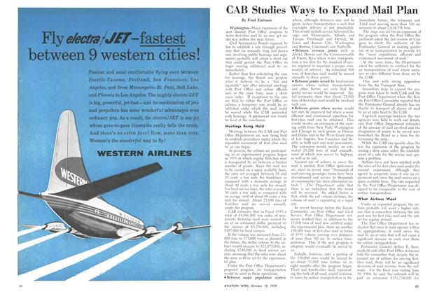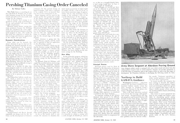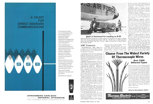 Wright-Patterson AFB, Ohio—Following is a list of unclassified contracts for $25,000 and over as released by the Air Materiel Command. Sundstrand Aviation Division, Sundstrand Corp., Rockford, I11., 18 ea., transmission assemblies, Sundstrand P/N M627219 ; 7 ea., frequency and load controllers, P/N 669970, spare parts and maintenance tools and test equipment for SM-62A missile, (PRs EA-9031-4621 and amendment no. 1 ; EA-9-03C1620), $148,770.