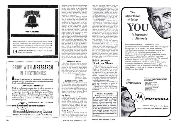 About 1613, May 12, 1959, Capital Airlines Flight 75 disintegrated in flight over an area near Chase, Md. All occupants, four crew and 27 passengers, were killed. The aircraft, a Vickers-Armstrongs Viscount, N 7463, was destroyed. From all of the available evidence the Board believes that the in-flight disintegration was caused by aerodynamic loads imposed on the aircraft which exceeded its design strength and which were generated by an excessive airspeed combined with turbulence and maneuvering loads (AW Nov. 2, p. 30).