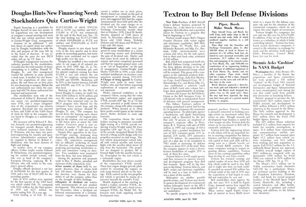 Disposition of Lear, Inc. common shares has been reported by the Securities and Exchange Commission, during the period Jan. 11 to Feb. 10, 1960, as follows: Philip E. Golde, officer and director, 4,000 shares, leaving a holding of 4,104; Andrew F. Haiduck, officer, 5.000 shares, his total holding; Albert C. Keske, officer, 241 shares, leaving a holding of 1,100; William P. Lear, director and beneficial owner, 30,000 shares, leaving a holding of 392,768.