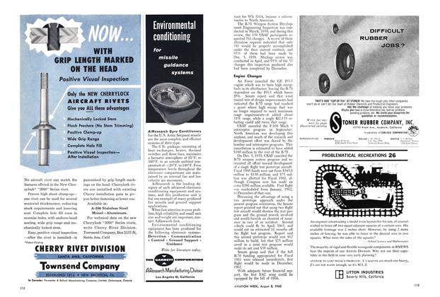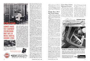 Washington—Following is a list of aerospace industry officers’ and directors’ salaries and stock holdings for 1959 as reported to the Securities and Exchange Commission: Cessna Aircraft Co.—D. L. Wallace, president and director, $85,500 salary, 54,759 shares of common stock and 22,936 shares of common stock beneficially owned by Wallace’s family; F. A. Boettgerm, vice president, treasurer and director, $60,840 salary and 8,875 shares of common stock; D. R. Roskam, vice president-Aircraft Division and director, $59,280 salary and 9,039 shares of common stock; T. B. Salter, vice president-engineering and director, $43,680 salary and 5,685 shares of common stock; W. F. Cassedy, Jr., president-Aircraft Radio Corp. (a subsidiary) and director, $31,200 salary and 4,368 shares of common stock; S. Coleman, director, no salary and 1,040 shares of common stock; R. Russell, director, no salary and 1,128 shares of common stock.