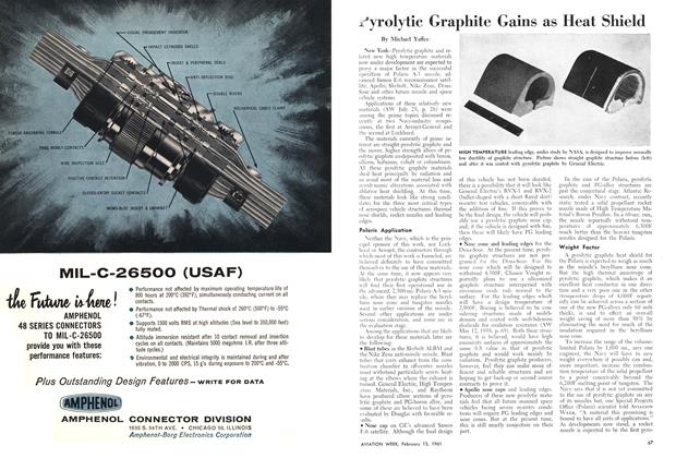 New York—Pyrolytic graphite and related new high temperature materials now under development are expected to prove a major factor in the successful operation of Polaris A-3 missile, advanced Samos E-6 reconnaissance satellite, Apollo, Skybolt, Nike Zeus, DynaSoar and other future missile and space vehicle systems.