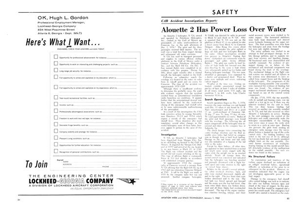 An Alouette 2 helicopter, N 526, owned and operated by Petroleum Helicopters, Inc., crashed in the Gulf of Mexico approximately 25 miles south-southwest of Cameron, La., in the early afternoon of Dec. 2, 1958.* The pilot and the three passengers received fatal injuries.