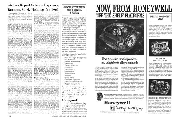 Washington—Following is a list of airline officers’ salaries, bonuses and indirect compensation, expenses and stock holdings for the year ending Dec. 31, 1961, as reported to the Civil Aeronautics Board: Eastern Air Lines, Inc.—E. V. Rickenbacker, chairman of the board, $49,808 salary, $900 bonus and indirect compensation, $12,000 expenses, 24,549 shares of common stock;