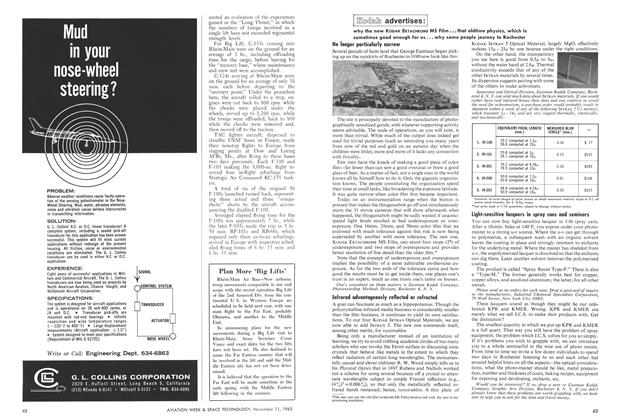 Washington—Following is a list of aerospace industry directors and officers with 1962 salaries above $30,000, and their stockholdings, as they were reported to the Securities and Exchange Commission: AMERICAN MACHINE & FOUNDRY CO.-NEW JERSEY—R. M. Brumfield, director (elected October, 1962), president of Potter & Brumfield Div., $35,581 salary, 137,187 shares of common stock, $14,400 4¼% debentures; C. L. Burgess, president (from Jan. 1 to Aug. 10, 1962), chairman of the board and chief executive officer (as of Aug. 10, 1962), $100,300 salary, 5,600 shares of common stock, $20,500 4¼% debentures; O. S. Cox, director (elected 1962), 200 shares of common stock; F. P. Downey, vice president (from Jan. 1 to Aug. 10, 1962), executive vice president (as of Aug. 10, 1962), director, $88,175 salary, 27,800 shares of common stock, $69,600 4¼% debentures; R. C. Gott, executive vice president (from Jan. 1 to Aug. 10, 1962), president (as of Aug. 10, 1962), director, $93,700 salary, 19,904 shares of common stock, $63,600 4¼% debentures; G. S. Hastings, vice president in charge of patents, director, $45,050 salary, 5,021 shares of common stock, $4,200 4¼% debentures; G. S. Hills, general counsel, director, $26,128 salary, 10,308 shares of common stock; D. S. Meiklejohn, financial vice president and treasurer, director, $73,485 salary, 10,126 shares of common stock; S. J. Osborne, director, 834 shares of common stock; H. P. Patterson, director, 24,100 shares of common stock, trustee and residuary beneficiary of a trust holding 61,064 shares of common stock, 2,169 shares of common stock held