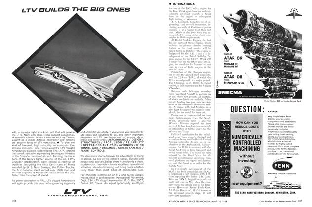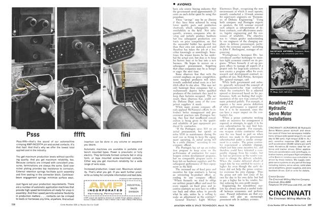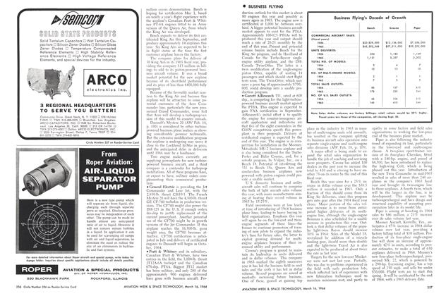 by today’s medium-size piston-powered business aircraft, is the formula wanted by corporate executives. The Lear Jet promises to be the fastest corporate jet built. Some indications are that the airplane may be flown at supersonic speed prior to obtaining its FAA certificate, although its placarded speed will be approximately Mach .82 at a 40,000-ft.