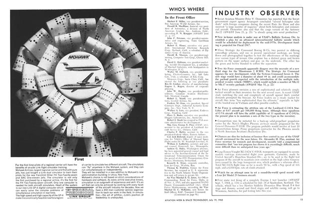 Cover—Ian Macdonald for Aviation Week; 19—NASA; 22—Aviation Week; 23—Westinghouse; 27—Eastern Airlines (top), U. S. Bureau of Census; 28—Douglas Aircraft; 31—Ian Macdonald for Aviation Week; 34—Douglas Aircraft; 37, 41—Malev Hungarian Airlines; 42—USAF; 43—Giannini Controls Corp. (top).
