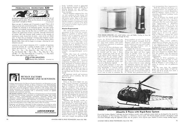 East Hartford, Conn.—General Dynamics F-lll aircraft, now being flight tested with rematchcd Pratt & Whitney TF30-P-1 afterburning turbofan engines, shows a significant improvement in compressor-stall-free performance, according to P&W.