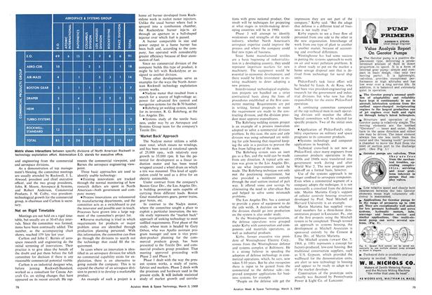 Formal procedures or special corporate departments for exploiting technological spinoff are functioning in a few aerospace companies, but there are signs the practice may be spreading gradually. These operations are not the same precise breed as the civil systems divisions that Aerojet-General, Avco, Bendix Aerospace Systems, TRW, Sylvania and others have formed (AW&ST July 1, 1968, p. 38).