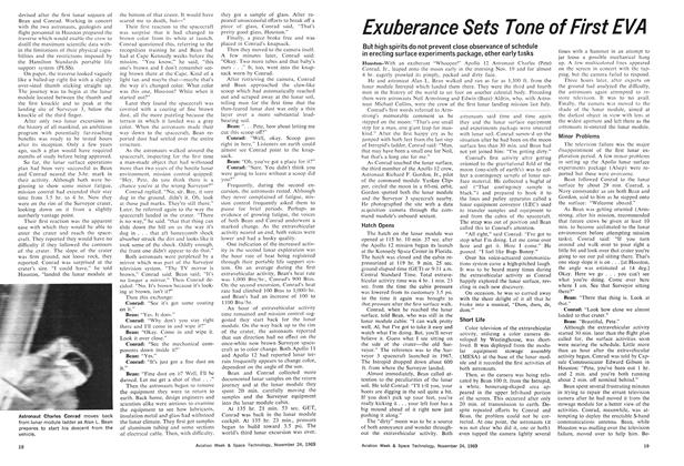 But high spirits do not prevent close observance of schedule in erecting surface experiments package, other early tasks