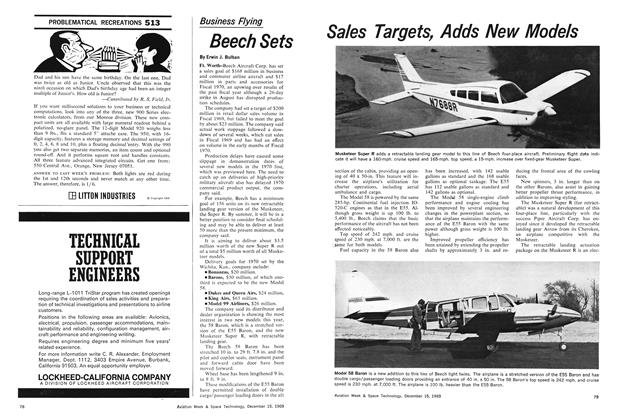Ft. Worth-Beech Aircraft Corp. has set a sales goal of $168 million in business and commuter airline aircraft and $17 million in parts and accessories for Fiscal 1970, an upswing over results of the past fiscal year although a 26-day strike in August has disrupted production schedules.