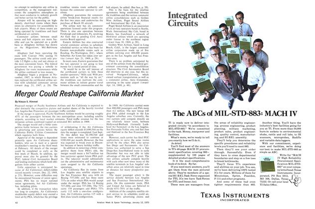 Proposed merger of Pacific Southwest Airlines and Air California is expected to alter distinctly the competitive picture and market shares of the heavily traveled Los Angeles-San Francisco air passenger traffic corridor. If the merger is approved, Pacific Southwest Airlines would be carrying roughly 45% of the passengers between the two metropolitan areas, including satellite airports, according to local market estimates.