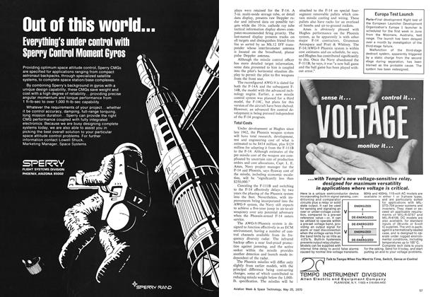 Los Angeles-Phoenix missile fire control system is being expanded and adapted to increase its effectiveness in critical missions of the Navy’s new Grumman F-14A/B air superiority fighter. The reconfigured AWG-9 fire control system will enhance performance of the Phoenix missiles beyond what was anticipated from the General Dynamics F-111B fleet defense interceptor, for which the system originally was developed by Hughes Aircraft Co. (AW&ST Sept. 11, 1967, p. 59).