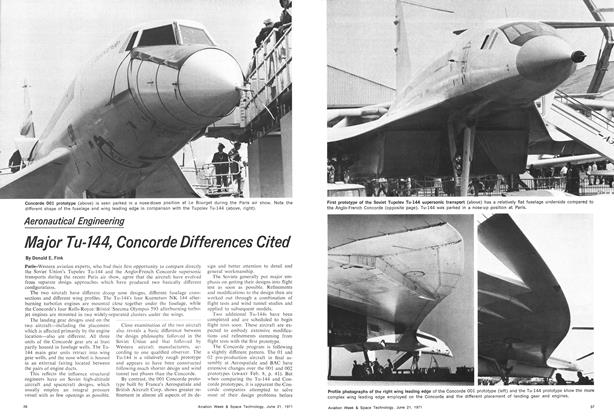 Paris—Western aviation experts, who had their first opportunity to compare directly the Soviet Union’s Tupolev Tu-144 and the Anglo-French Concorde supersonic transports during the recent Paris air show, agree that the aircraft have evolved from separate design approaches which have produced two basically different configurations.