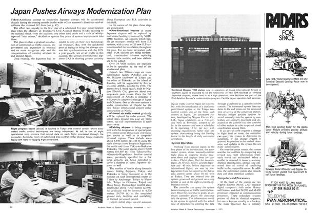 Tokyo—Ambitious attempt to modernize Japanese airways will be accelerated sharply during the coming months in the wake of last summer’s disastrous mid-air collision that claimed 162 lives (see p. 47). The effort was already in the first year of a scheduled five-year modernization plan when the Ministry of Transport’s Civil Aviation Bureau (CAB), reacting to the national shock from the accident, one other fatal crash and a rash of widely-reported “near misses,” decided to squeeze five years of system improvement into three.
