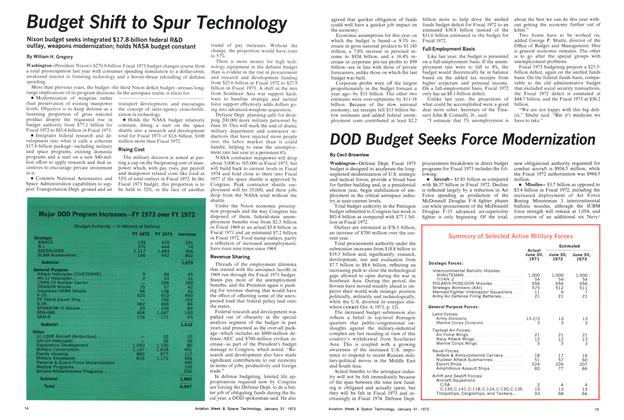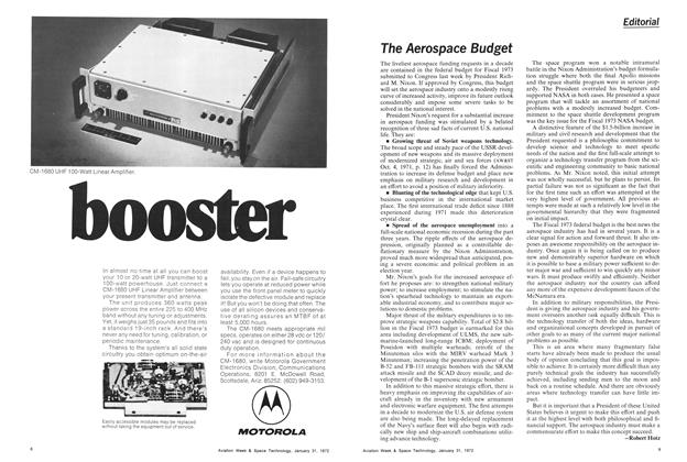 The liveliest aerospace funding requests in a decade are contained in the federal budget for Fiscal 1973 submitted to Congress last week by President Richard M. Nixon. If approved by Congress, this budget will set the aerospace industry onto a modestly rising curve of increased activity, improve its future outlook considerably and impose some severe tasks to be solved in the national interest.
