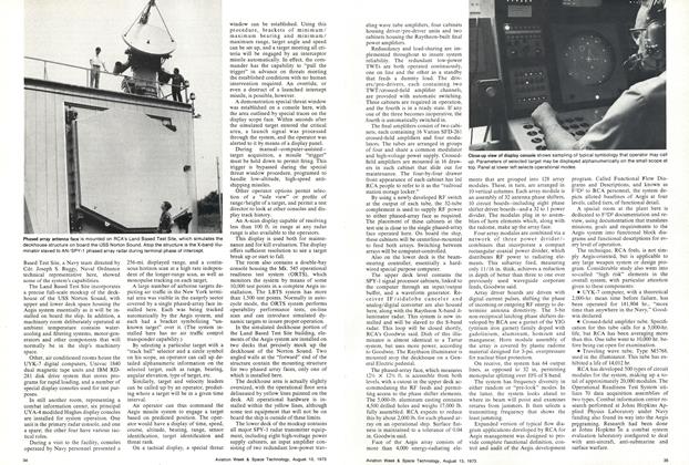 Moorestown, N. J.—Engineering development model of Navy’s Aegis integrated fleet defense system, successfully demonstrating phased-array radar, data processing and display capabilities of the hardware at a test site nearly 50 mi. inland here, is expected to be ready to go to sea for Category 2 testing on schedule in October.