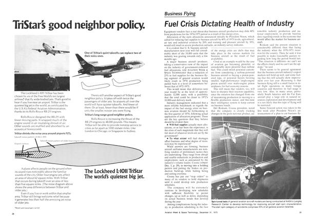 Equipment vendors face a real threat that business aircraft production may slide 40% from predictions for the 1974-1975 period as a result of the energy crisis. Alleviation of the stern allocations announced initially by President Nixon, which called for reducing fuel supplies to business aircraft by 40% of 1973 levels, agricultural, air taxi and industrial aviation by 20% and training and pleasure aircraft by 50%, would still result in severe production cutbacks, an industry survey indicates.
