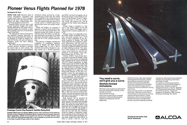 Moffett Field, Calif.—Intensive study of Venus’ atmosphere, ionosphere and weather could begin in 1978 if Congress approves the start of the National Aeronautics and Space Administration Pioneer Venus program in Fiscal 1975. Scientists believe that the study could provide important insights into earth’s weather phenomena, and unique clues to planetary origins and evolution, in addition to adding to the store of information about Venus itself.