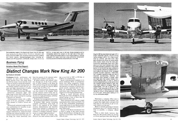 Washington—Profile, performance and quietness are three major features of Beech Aircraft Corp.’s new Super King Air 200 that make it more than the usual follow-on aircraft in model development. The aircraft, though retaining many of the familiar esthetics inside and out, systems and flight characteristics of earlier King Airs, is basically new, offering: