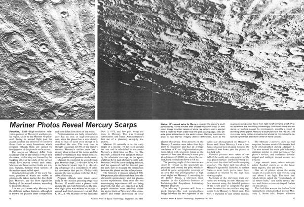 Pasadena, Calif.—High-resolution television pictures of Mercury’s southern polar region, taken by the Mariner 10 spacecraft during its second flight past the planet, confirm the existence of extensive thrust faults or scarp formations, which program officials think are caused by compression of the planet’s surface crust.