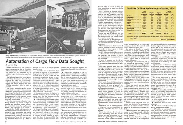 Geneva—International Air Transport Assn. is presenting a plan to the airline industry designed to cut costs and reduce long delays in the movement of air freight in hopes of stimulating cargo business. IATA formed a working group, known as the Cargo Automation Research Team (CART), two years ago to undertake a wide-sweeping study and analysis of a sluggish air freight, industry that, since 1970, has consistently failed to fulfill its potential.