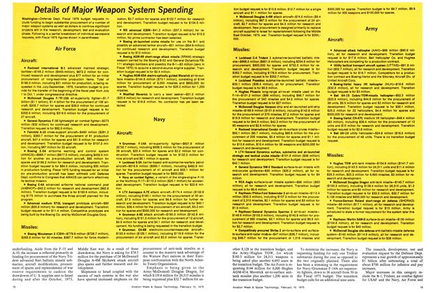 Washington—Defense Dept. Fiscal 1976 budget requests include funding to begin substantial procurement of a number of major weapon systems as well as dollars to continue significant projects still in the research, development, test and evaluation phase.