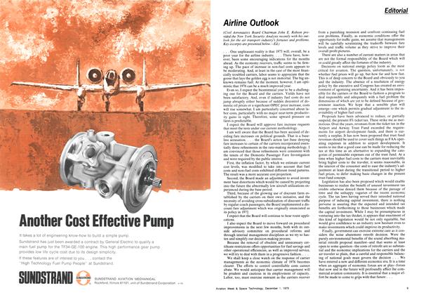 ...One unpleasant reality is that 1975 will, overall, be a poor year for the airline industry.... There have, however, been some encouraging indications for the months ahead. As the economy recovers, traffic seems to be firming up. The pace of increase in non-fuel costs appears to be moderating.