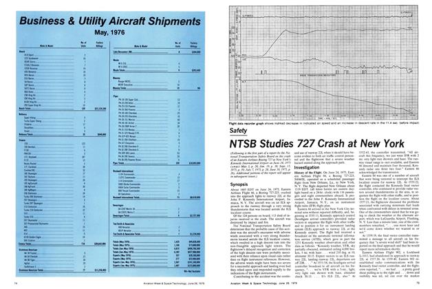 Synopsis About 1605 EDT on June 24, 1975, Eastern Airlines Flight 66, a Boeing 727-225, crashed into the approach lights to runway 22L at the John F. Kennedy International Airport, Jamaica, N. Y. The aircraft was on an ILS approach to the runway through a very strong thunderstorm that was located astride the ILS localizer course.