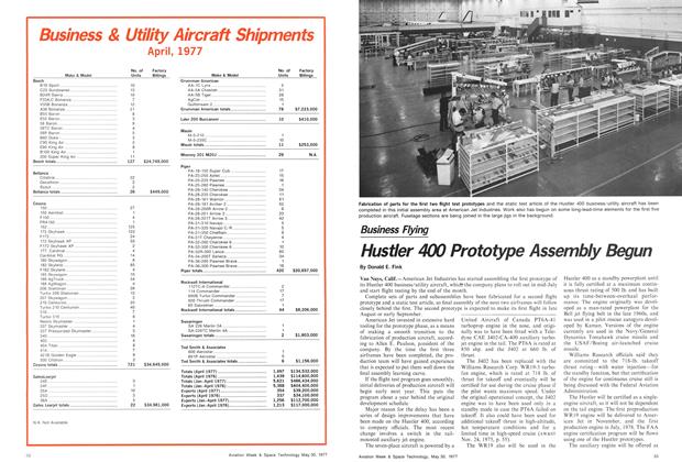 Van Nuys, Calif.—American Jet Industries has started assembling the first prototype of its Hustler 400 business/utility aircraft, which-the company plans to roll out in mid-July and start flight testing by the end of the month. Complete sets of parts and subassemblies have been fabricated for a second flight prototype and a static test article, so final assembly of the next two airframes will follow closely behind the first.