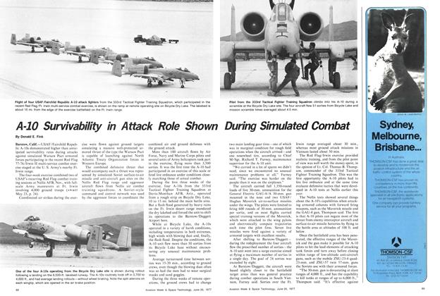 Barstow, Calif.—USAF/Fairchild Republic A-10s demonstrated higher than anticipated survivability rates during attacks against simulated Warsaw Pact armored forces participating in the recent Red Flag 77-76/Irwin II multi-service combat exercise staged at the U. S. Army’s nearby Ft. Irwin range.