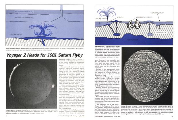 Pasadena, Calif.—NASA’s Voyager 2 spacecraft has been placed on a course for a 1981 flyby of Saturn after its successful encounter with Jupiter and several Jovian moons. The spacecraft performed a 76-min. trajectory correction maneuver shortly after it made the closest approach to Jupiter on July 9 at a distance of 404,100 mi.