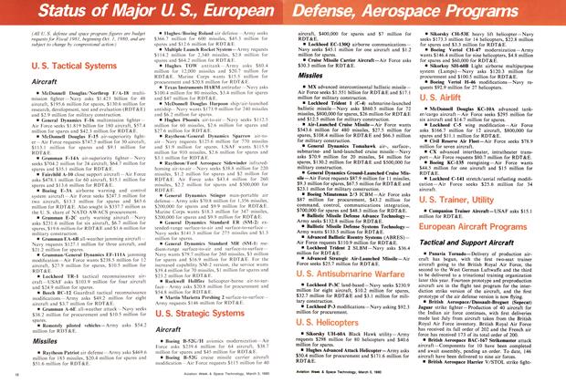 McDonnell Douglas/Northrop F/A-18 multimission fighter —Navy asks $1.423 billion for 48 aircraft, $195.6 million for spares, $130.6 million for research, development, test and evaluation (RDT&E) and $2.9 million for military construction.